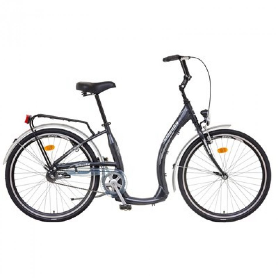 Mestský bicykel s unikátnou zníženou konštrukciou vhodnou pre ľudí so zníženou pohybovou schopnosťou, odľahčený rám zo zliatiny hliníka AL6061, nastaviteľný predstavec, predná brzda V-Brake, zadná protišľapná, dvojstenné ráfiky s vysokou pevnosťou, kompletná výbava na cestnú premávku. Rám: Aluminium AL6061, TIG welding, Oversize Head parts, U-TYPE konštrukcia, mimoriadne nízka úroveň spodnej rúry - 180mm Vidlica: Hi-TEN pevná, tapered stays / SUNTOUR CR7-V 40mm Zadný menič: - - -Predný menič: - - -Radenie: - - -Viackolo: - - -Reťaz: HV400 1spdKľuky: Steel 38t 165mmPočet prevodov: 1 Predný náboj: STEEL PARALAXZadný náboj: VELOSTEEL CoasterRáfiky: M.A.T.E. DWR-30Plášte: MITAS FLASH 26x1,5"Výplet: Pozink CZ 2,0mmBrzdy: SACCON V-BRAKE / Coaster Riadidlá: Steel Raised 620mmPredstavec: ZOOM MTS-C331 Nast.Sedlovka: Steel 30,2/300mmSedlo: M.A.T.E. CITY ElastomerRukoväte: Herrmans MOZAPedále: City Plast Doplnky: blatníky RPZ so vzperami, oceľový nosič, LED osvetlenie, stojan Hmotnosť: 14,9 kg
