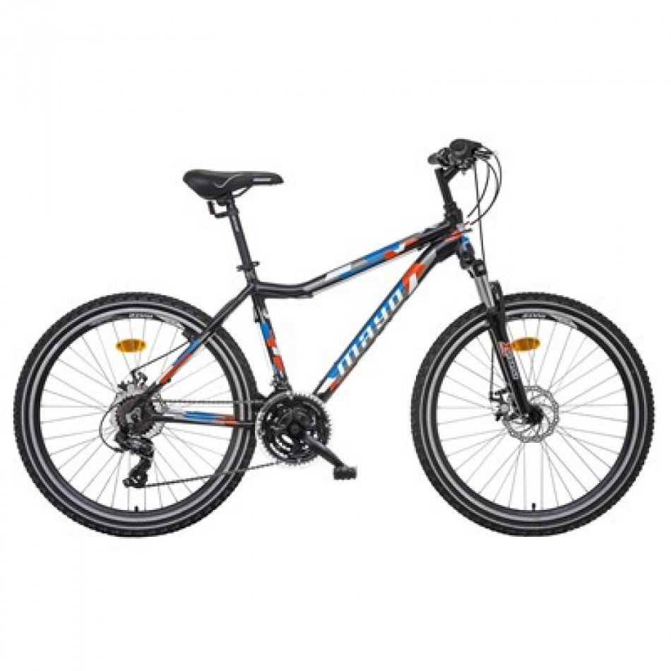 MTB bicykel veľkostí 26" s rámom z hliníkovej zliatiny v ekonomickom prevedení, rám AL6061 so zohnutou spodnou rúrou, vidlica SUNTOUR M3010AL, mechanické diskové brzdy, 18 prevodov, komponenty SHIMANO TOURNEY, radenie SHIMANO REVOSHIFT, kľuky PROWHEEL, JOYTECH AL náboje, spevnené DOUBLEWALL ráfiky M.A.T.E. DWR-20D. Rám: Aluminium AL6061, TIG welding, Down tube bended Bi-Axial shape, S-Type seat stays, Integrated Ahead headparts Vidlica: SUNTOUR M3020AL DS 66 mm Zadný menič: SHIMANO TY-300Predný menič: SHIMANO FD-TZ31Radenie: SHIMANO RS-35 REVO 3x6Viackolo: SHIMANO MF-TZ20Reťaz: INDEX 6/7spdKľuky: STEEL 48/38/28Počet prevodov: 18 Predný náboj: JOYTECH AL DISCZadný náboj: JOYTECH AL DISCRáfiky: M.A.T.E. DWR-20DPlášte: GW-915 26x2,0"Výplet: Pozink CZ 2,0mmBrzdy: SACCON DM-31 Mechanic Riadidlá: Steel RaisedPredstavec: Steel 25,4mmSedlovka: Steel 27,2/300mmSedlo: M.A.T.E. BASICRukoväte: Herrmans MOZA 90mmPedále: Plastic body / Steel cage Hmotnosť: 14,7kg