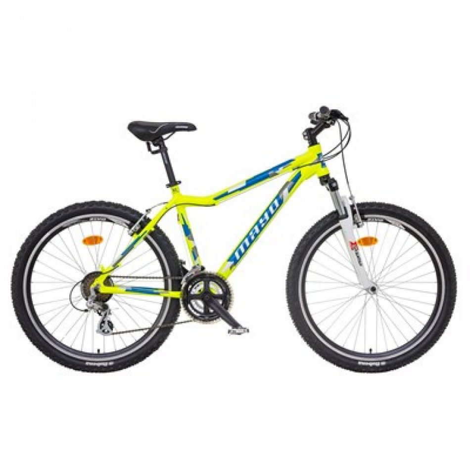 MTB bicykel veľkosti 26", rám AL6061 so zohnutou spodnou rúrou, vidlica SUNTOUR M3020AL-A s nastavením predpätia, 21 prevodov, komponenty SHIMANO TOURNEY, dvojpáčkové radenie SHIMANO RAPIDFIRE, hliníkové kľuky PROWHEEL, JOYTECH AL náboje, V-Brake brzdy SACCON, AHEAD hl. zloženie a predstavec, spevnené DOUBLEWALL ráfiky M.A.T.E. Rám: Aluminium AL6061, TIG welding, Down tube bended Bi-Axial shape, S-Type seat stays, Integrated Ahead headparts Vidlica: SUNTOUR M-3010AL-A P 75 mm Zadný menič: SHIMANO ALTUSPredný menič: SHIMANO FD-TX51Radenie: SHIMANO STEF-51 3x7Viackolo: SHIMANO MF-TZ21Reťaz: KMC Z-51Kľuky: ALLOY 48/38/28Počet prevodov: 21 Predný náboj: JOYTECH AL RUZadný náboj: JOYTECH AL RURáfiky: M.A.T.E. DWR-20VPlášte: MITAS OCELOT 26x2,1"Výplet: Pozink CZ 2,0mmBrzdy: SACCON FV-951 V-BRAKE Riadidlá: Steel RaisedPredstavec: Steel AheadSedlovka: Steel 27,2/300mmSedlo: M.A.T.E. BASICRukoväte: HERRMANS DUDE 125mmPedále: Plastic body / Steel cageHmotnosť: 14 kg