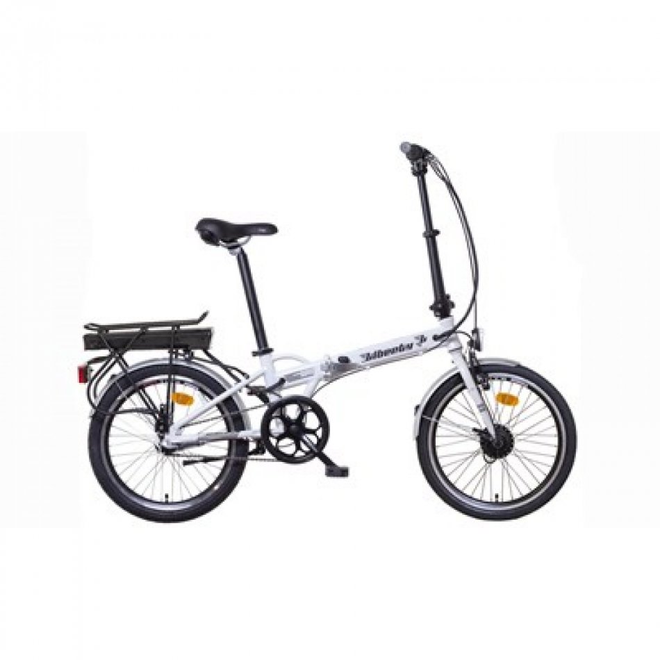 Skladací bicykel s elektrickým motorom v prednom náboji, akumulátorom v zadnom nosiči, so zadným 3 rýchlostným nábojom SHIMANO NEXUS s protišľapnou brzdou. Bicykel je veľmi jednoduché poskladať do rozmerov 68cm x 87cm x 44cm, čo umožňuje pohodlné prevážanie bicykla dopravnými prostriedkami, príp. bezproblémové uskladnenie aj v obmedzenom priestore. Dojazd bicykla je 25-60 km na jedno nabitie, má tri stupne podpory motora s ovládaním na riadidlách, Li-Ion akumulátor. K elektrobicyklu je možné doobjednať funkciu START-UP asistent, ktorá umožňuje pohon bicykla do 6km/h aj bez otáčania pedálov, aktivuje sa stlačením tlačidla na ovládacom paneli a umožňuje tak pohodlný rozbeh a pomoc pri tlačení bicykla do strmého kopca. Bicykel vyhovuje norme STN EN 15 194, tzn. že je možné ho prevádzkovať na pozemných komunikáciach bez potreby vodičského oprávnenia a akýchkoľvek iných dokladov. Ovládanie bicykla je veľmi jednoduché, akonáhle začne jazdec otáčať pedálmi smerom vpred, pohybový senzor spustí motor a podľa nastaveného stupňa podpory dávkuje energiu do motora, čím jazdcovi výrazne pomáha pri jazde. Po rovine je možné udržiavať bicykel v jadzde iba pomalým otáčaním pedálov tak, aby snímač pohybu pedálov nepretržite udržiaval motor v prevádzke. Maximálna rýchlosť sa dá ovplyvniť nastavením vhodného stupňa podpory od cca 15km/h až do max. rýchlosti 25km/h v troch stupňoch. Pri jazde do kopca elektromotor výrazne jazdcovi pomáha prekonať stúpanie, pri strmších stúpaniach je však potrebné dodávať energiu šliapaním do pedálov, aj keď vo výrazne menšej miere ako na bežnom bicykli. Dojazd bicykla závisí od viacerých faktorov, ako napr. výškového profilu trate, hmotnosti jazdca a jeho podpory, nastaveného stupňa podpory motora, poveternostných podmienok a pod. Bicykel nie je vhodné používať na mokrej vozovke, za dažďa, alebo v snehovej kalamite. Akumulátor sa nabíja dodávanou automatickou nabíjačkou, pričom dobíjací cyklus trvá max. 7 hodín (pri úplnom vybití). K cene je účtovaný recyklačný poplatok /RP/ v zmysle §32 ods.5 zákona č. 79/2015 Zb. z. o odpadoch vo výške 4,80€ bez DPH/5,76€ s DPH.