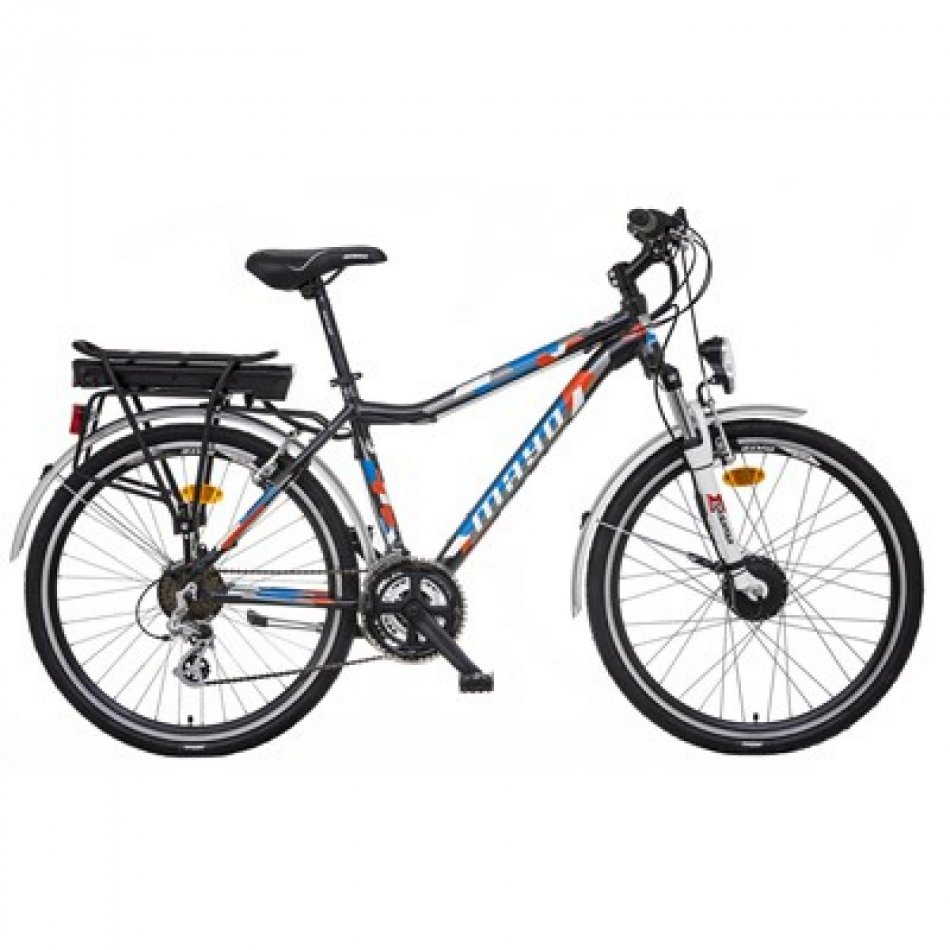 Plnohodnotný MTB bicykel s pomocným elektrickým motorom v prednom náboji a akumulátorom v zadnom nosiči. Dojazd bicykla je 20-60 km na jedno nabitie, má tri stupne podpory motora s ovládaním na riadidlách, Li-Ion akumulátor 36V/10,4Ah a max. rýchlosť 25km/h. Je možné vybrať zo širokej škály veľkostí a prevední rámov. Bicykel je osadený radiacim systémom SHIMANO TOURNEY s 21 prevodmi, V-Brake brzdami a kompletne vybavený na cestnú prevádzku (blatníky, LED osvetlenie). Umožňuje prevádzku na cestách, ale aj v ľahšom horskom teréne, kde poskytne nezabudnuteľné zážitky z prírody aj ľuďom so slabšou telesnou kondíciou.K elektrobicyklu je možné doobjednať funkciu START-UP asistent, ktorá umožňuje pohon bicykla do 6km/h aj bez otáčania pedálov, aktivuje sa jednoduchým stlačením tlačidla na ovládacom paneli a umožňuje pohodlný rozbeh bicykla a pomoc pri tlačení bicykla do strmého kopca. Bicykel vyhovuje norme STN EN 15 194, tzn. že je možné ho prevádzkovať na pozemných komunikáciach bez potreby vodičského oprávnenia a akýchkoľvek iných dokladov. Ovládanie bicykla je veľmi jednoduché, akonáhle začne jazdec otáčať pedálmi smerom vpred, pohybový sensor spustí motor a podľa nastaveného stupňa podpory dávkuje energiu do motora, čím jazdcovi výrazne pomáha pri jazde. Po rovine je možné udržiavať bicykel v jadzde iba pomalým otáčaním pedálov. Max. rýchlosť sa dá ovplyvniť nastavením vhodného stupňa podpory od cca 15km/h až do max. rýchlosti v troch stupňoch. Pri jazde do kopca elektropohon výrazne jazdcovi pomáha prekonať stúpanie, pri strmších stúpaniach je však potrebné dodávať energiu šliapaním do pedálov, aj keď vo výrazne menšej miere, ako na bežnom bicykli. Dojazd bicykla závisí od viacerých faktorov a to napr. výškového profilu trate, hmotnosti jazdca a jeho podpory, nastaveného stupňa podpory motora, poveternostných podmienok a pod. Bicykel nie je vhodné používať na mokrej vozovke a počas dažďa, alebo v snehovej kalamite. Akumulátor sa nabíja dodávanou automatickou nabíjačkou, pričom dobíjací cyklus trvá max. 7 hodín (pri úplnom vybití). V prípade dlhodobého uskladnenia akumulátora bez používania je potrebné ho nabiť iba na cca 50-60% kapacity a udržiavať ho v teplotnom rozsahu 15-20°C.K cene je účtovaný recyklačný poplatok /RP/ v zmysle §32 ods.5 zákona č. 79/2015Z.z. o odpadoch vo výške 4,80€ bez DPH/5,76€ s DPH.