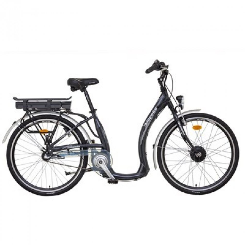 Bicykel s veľmi nízkou konštrukciou rámu vhodný najmä pre ľudí so zníženou pohybovou schopnosťou dolných končatín, s pomocným elektrickým motorom v prednom náboji a 3-rýchlostným zadným nábojom s protišľapnou brzdou. Dojazd bicykla je 20-60 km na jedno nabitie, má tri stupne podpory motora s ovládaním na riadidlách, Li-Ion akumulátor 36V/10Ah. Rám je vyrobený zo zliatiny hliníka AL-6061, čo výrazne znižuje hmotnosť bicykla. K elektrobicyklu je možné doobjednať funkciu START-UP asistent, ktorá umožňuje pohon bicykla do 6km/h aj bez otáčania pedálov, aktivuje sa stlačením tlačidla na ovládacom paneli a umožňuje pohodlný rozbeh bicykla a pomoc pri tlačení bicykla do strmého kopca. Bicykel vyhovuje norme STN EN 15 194, tzn. že je možné ho prevádzkovať na pozemných komunikáciach bez potreby vodičského oprávnenia a akýchkoľvek iných dokladov. Ovládanie bicykla je veľmi jednoduché, akonáhle začne jazdec otáčať pedálmi smerom vpred, pohybový senzor spustí motor a podľa nastaveného stupňa podpory dávkuje energiu do motora, čím jazdcovi výrazne pomáha pri jazde. Po rovine je možné udržiavať bicykel v jadzde iba pomalým otáčaním pedálov tak, aby snímač pohybu pedálov nepretržite udržiaval motor v prevádzke. Maximálna rýchlosť sa dá ovplyvniť nastavením vhodného stupňa podpory od cca 15km/h až do max. rýchlosti 25km/h. Pri jazde do kopca elektromotor výrazne jazdcovi pomáha prekonať stúpanie, pri strmších stúpaniach je však potrebné dodávať energiu šliapaním do pedálov, aj keď vo výrazne menšej miere ako na bežnom bicykli. Dojazd bicykla závisí od viacerých faktorov, ako výškového profilu trate, hmotnosti jazdca a jeho podpory, nastaveného stupňa podpory motora, poveternostných podmienok a pod. Bicykel nie je vhodné používať na mokrej vozovke, za dažďa, alebo v snehovej kalamite. Akumulátor sa nabíja dodávanou automatickou nabíjačkou, pričom dobíjací cyklus trvá max. 7 hodín (pri úplnom vybití akumulátora). K cene je účtovaný recyklačný poplatok /RP/ v zmysle §32 ods.5 zákona č. 79/2015 Zb. z. o odpadoch vo výške 4,80€ bez DPH/5,76€ s DPH.