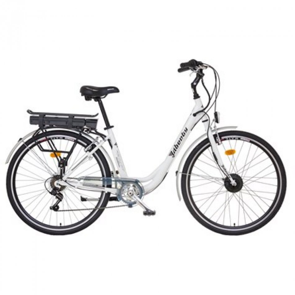 Mestský bicykel v 28" prevedení s pomocným elektrickým motorom v prednom náboji a 6 prevodmi, zadným meničom SHIMANO TOURNEY a radením REVOSHIFT. Dojazd bicykla je 20-60 km na jedno nabitie, má tri stupne podpory motora s ovládaním na riadidlách, Li-Ion akumulátor. K elektrobicyklu je možné doobjednať funkciu START-UP asistent, ktorá umožňuje pohon bicykla do 6km/h aj bez otáčania pedálov, aktivuje sa stlačením tlačidla na ovládacom paneli a umožňuje pohodlný rozbeh bicykla a tiež pomoc pri tlačení bicykla do strmého kopca. Bicykel vyhovuje norme STN EN 15 194, tzn. že je možné ho prevádzkovať na pozemných komunikáciach bez potreby vodičského oprávnenia a akýchkoľvek iných dokladov. Ovládanie bicykla je veľmi jednoduché - akonáhle začne jazdec otáčať pedálmi smerom vpred, pohybový senzor spustí motor a podľa nastaveného stupňa podpory dávkuje energiu do motora, čím jazdcovi výrazne pomáha pri jazde. Po rovine je možné udržiavať bicykel v jadzde iba pomalým otáčaním pedálov tak, aby snímač pohybu pedálov nepretržite udržiaval motor v prevádzke. Rýchlosť sa dá ovplyvniť nastavením vhodného stupňa podpory od cca 15km/h až do max. rýchlosti 25km/h v troch stupňoch. Pri jazde do kopca elektromotor výrazne jazdcovi pomáha prekonať stúpanie, pri strmších stúpaniach je však potrebné dodávať energiu šliapaním do pedálov, aj keď vo výrazne menšej miere ako na bežnom bicykli. Dojazd bicykla závisí od viacerých faktorov: výškového profilu trate, hmotnosti jazdca a jeho podpory, nastaveného stupňa podpory motora, poveternostných podmienok a pod. Bicykel nie je vhodné používať na mokrej vozovke, za dažďa, alebo v snehovej kalamite. Akumulátor sa nabíja dodávanou automatickou nabíjačkou, pričom dobíjací cyklus trvá max. 7 hodín (pri úplnom vybití akumulátora). K cene je účtovaný recyklačný poplatok /RP/ v zmysle §32 ods. 5 zákona č. 79/2015 Zb. z. o odpadoch vo výške 4,80€ bez DPH/5,76€ s DPH.