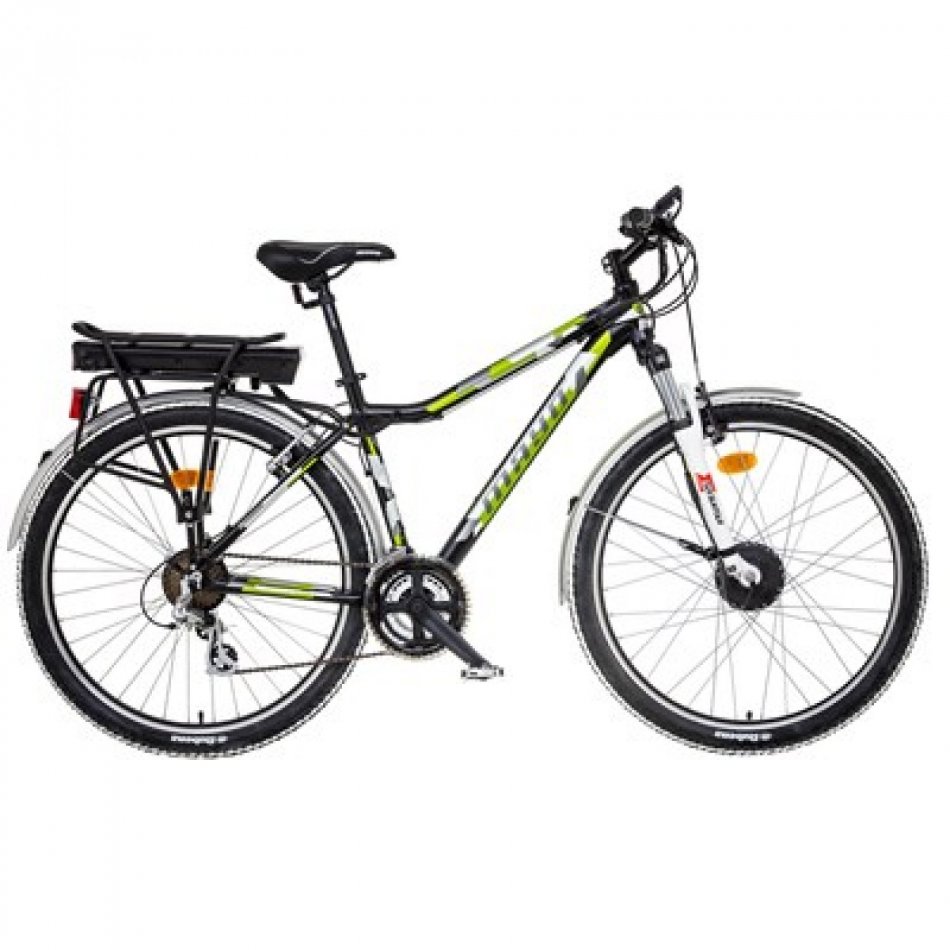 Bicykel s pomocným elektrickým motorom 36V/250W integrovaným v prednom náboji a akumulátorom v zadnom nosiči. Dojazd bicykla je 20-60 km na jedno nabitie, má tri stupne podpory motora s ovládaním na riadidlách, Li-Ion akumulátor 36V/10,4Ah/13,6Ah a max. rýchlosť 25km/h. Bicykel je osadený radiacim systémom SHIMANO, V-Brake brzdami a kompletne vybavený na cestnú prevádzku (blatníky, LED osvetlenie). Umožňuje prevádzku na asfaltových aj spevnených lesných cestách. Preto je mimoriadne vhodný na rekreačnú cykloturistiku aj ľuďom so slabšou telesnou kondíciou. K elektrobicyklu je možné doobjednať funkciu START-UP asistent, ktorá umožňuje pohon bicykla do 6km/h aj bez otáčania pedálov, aktivuje sa jednoduchým stlačením tlačidla na ovládacom paneli a umožňuje pohodlný rozbeh bicykla, ako aj pomoc pri tlačení bicykla do strmého kopca. Bicykel vyhovuje norme STN EN 15 194, tzn. že je možné ho prevádzkovať na pozemných komunikáciach bez potreby vodičského oprávnenia a akýchkoľvek iných dokladov. Ovládanie bicykla je veľmi jednoduché - akonáhle začne jazdec otáčať pedálmi smerom vpred, pohybový sensor spustí motor a podľa nastaveného stupňa podpory dávkuje energiu do motora, čím jazdcovi výrazne pomáha pri jazde. Po rovine je možné udržiavať bicykel v jadzde iba pomalým otáčaním pedálov tak, aby snímač pohybu pedálov nepretržite udržiaval motor v prevádzke. Maximálna rýchlosť sa dá ovplyvniť nastavením vhodného stupňa podpory od cca 15km/h až do max. rýchlosti v troch stupňoch. Pri jazde do kopca elektropohon výrazne jazdcovi pomáha prekonať stúpanie, pri strmších stúpaniach je však potrebné dodávať energiu šliapaním do pedálov, aj keď vo výrazne menšej miere ako na bežnom bicykli. Dojazd bicykla závisí od viacerých faktorov a to napr. výškového profilu trate, hmotnosti jazdca a jeho podpory, nastaveného stupňa podpory motora, poveternostných podmienok a pod. K cene je účtovaný recyklačný poplatok /RP/ v zmysle §32 ods.5 zákona č. 79/2015 Z. z. o odpadoch vo výške 4,80€ bez DPH/5,76€ s DPH.