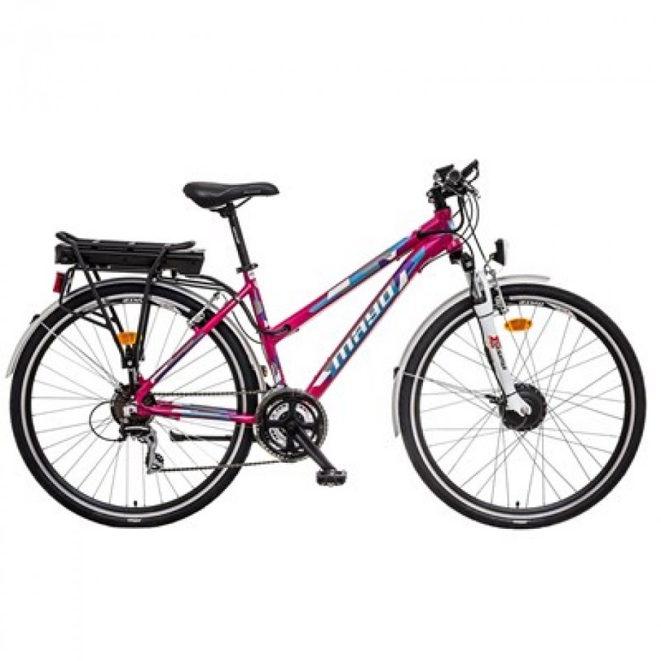 Trekkingový bicykel s pomocným elektrickým motorčekom v prednom náboji a akumulátorom v zadnom nosiči. Dojazd bicykla je 20-60 km na jedno nabitie, má tri stupne podpory motora s ovládaním na riadidlách, Li-Ion akumulátor 36V/10Ah/13,6Ah a max. rýchlosť 25km/h. Bicykel je osadený radiacim systémom SHIMANO, V-Brake brzdami a kompletne vybavený na cestnú prevádzku (blatníky, LED osvetlenie). Umožňuje prevádzku na asfaltových aj spevnených lesných cestách. Preto je mimoriadne vhodný na rekreačnú cykloturistiku aj ľuďom so slabšou telesnou kondíciou. K elektrobicyklu je možné doobjednať funkciu START-UP asistent, ktorá umožňuje pohon bicykla do 6km/h aj bez otáčania pedálov, aktivuje sa jednoduchým stlačením tlačidla na ovládacom paneli a umožňuje pohodlný rozbeh bicykla, ako aj pomoc pri tlačení bicykla do strmého kopca. Bicykel vyhovuje norme STN EN 15 194, tzn. že je možné ho prevádzkovať na pozemných komunikáciach bez potreby vodičského oprávnenia a akýchkoľvek iných dokladov. Maximálna rýchlosť sa dá ovplyvniť nastavením vhodného stupňa podpory od cca 15km/h až do max. rýchlosti v troch stupňoch. Pri jazde do kopca elektropohon výrazne jazdcovi pomáha prekonať stúpanie, pri strmších stúpaniach je však potrebné dodávať energiu šliapaním do pedálov, aj keď vo výrazne menšej miere ako na bežnom bicykli. Dojazd bicykla závisí od viacerých faktorov a to napr. výškového profilu trate, hmotnosti jazdca a jeho podpory, nastaveného stupňa podpory motora, poveternostných podmienok a pod. K cene je účtovaný recyklačný poplatok /RP/ v zmysle §32 ods.5 zákona č. 79/2015Z.z. o odpadoch vo výške 4,80€ bez DPH/5,76€ s DPH.