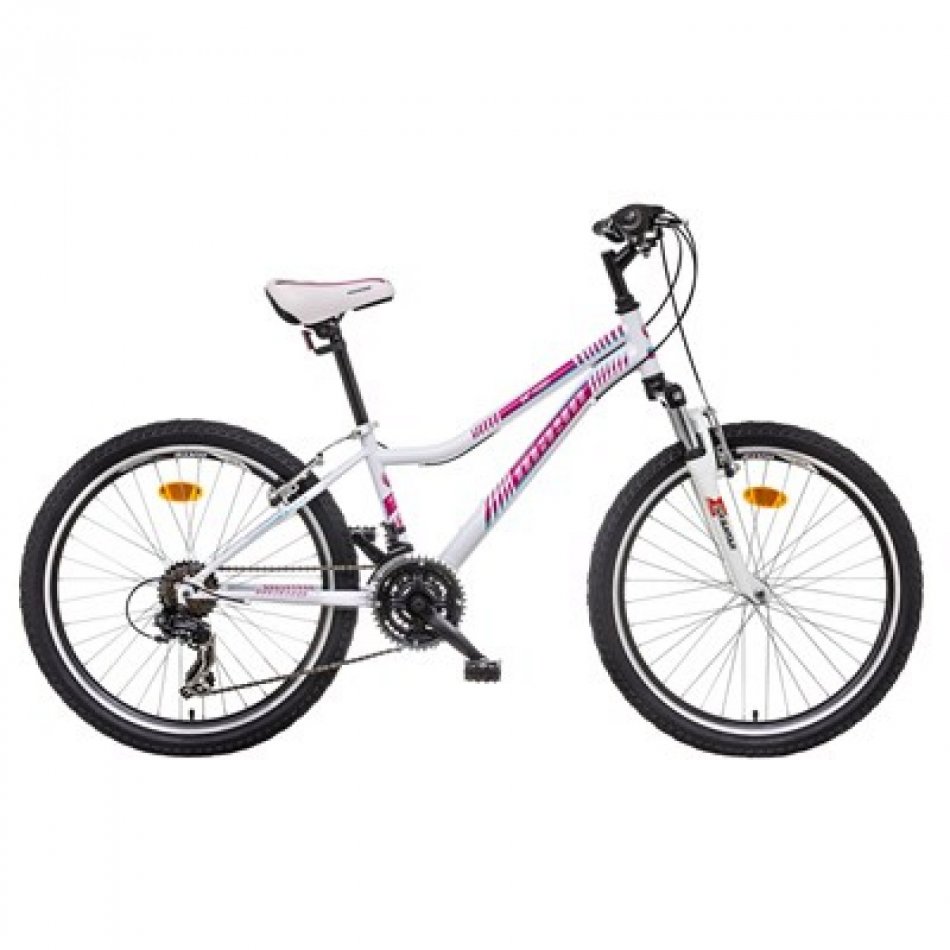 24" model bicykla s oceľovým UNI-Style rámom vo veľkosti 13", vhodný pre deti vo veku 8-12 rokov. Komponenty SHIMANO TOURNEY, REVOSHIFT radenie, 18 prevodov, V-Brake brzdy, PROWHEEL kľuky, JOYTECH AL náboje, zapúzdrená stredová oska, spevnené ráfiky DOUBLE WALL. Rám: Hi-TEN steel, TIG welding, down tube bended Bi-Axial shape, S-Type rear stays, top tube UNI-Style bended shape, oversize Headparts Vidlica: SUNTOUR M3010AL 50mm Zadný menič: SHIMANO TY-300Predný menič: SHIMANO FD-TZ30Radenie: SHIMANO RS-35 REVO 3x6Viackolo: SHIMANO MF-TZ20Reťaz: INDEX 6/7spdKľuky: STEEL 42/32/22 152mmPočet prevodov: 18 Predný náboj: ALZadný náboj: ALRáfiky: M.A.T.E. DWR-25Plášte: MITAS DART 24x1,9"Výplet: Pozink CZ 2,0mmBrzdy: SACCON FV-951 V-BRAKE Riadidlá: Steel RaisedPredstavec: Steel 25,4mmSedlovka: Steel 25,4/300mmSedlo: M.A.T.E. KID BASICRukoväte: HERRMANS MOZA 70mmPedále: Plastic body / Steel cage Hmotnosť: 13,1kg