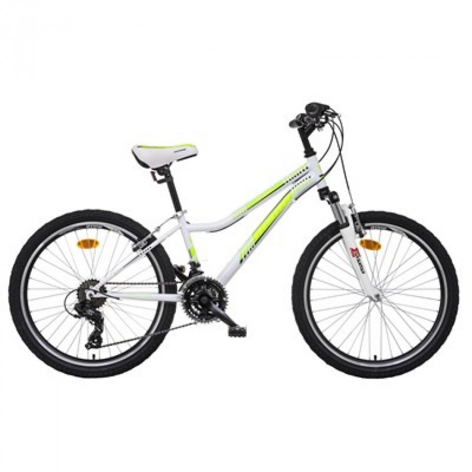 24" model bicykla s oceľovým UNI-Style rámom vo veľkosti 13", vhodný pre deti vo veku 8-12 rokov. Komponenty SHIMANO TOURNEY, REVOSHIFT radenie, 18 prevodov, V-Brake brzdy, PROWHEEL kľuky, JOYTECH AL náboje, zapúzdrená stredová oska, spevnené ráfiky DOUBLE WALL. Rám: Hi-TEN steel, TIG welding, down tube bended Bi-Axial shape, S-Type rear stays, top tube UNI-Style bended shape, oversize Headparts Vidlica: SUNTOUR M3010AL 50mm Zadný menič: SHIMANO TY-300Predný menič: SHIMANO FD-TZ30Radenie: SHIMANO RS-35 REVO 3x6Viackolo: SHIMANO MF-TZ20Reťaz: INDEX 6/7spdKľuky: STEEL 42/32/22 152mmPočet prevodov: 18 Predný náboj: ALZadný náboj: ALRáfiky: M.A.T.E. DWR-25Plášte: MITAS DART 24x1,9"Výplet: Pozink CZ 2,0mmBrzdy: SACCON FV-951 V-BRAKE Riadidlá: Steel RaisedPredstavec: Steel 25,4mmSedlovka: Steel 25,4/300mmSedlo: M.A.T.E. KID BASICRukoväte: HERRMANS MOZA 70mmPedále: Plastic body / Steel cage Hmotnosť: 13,1kg